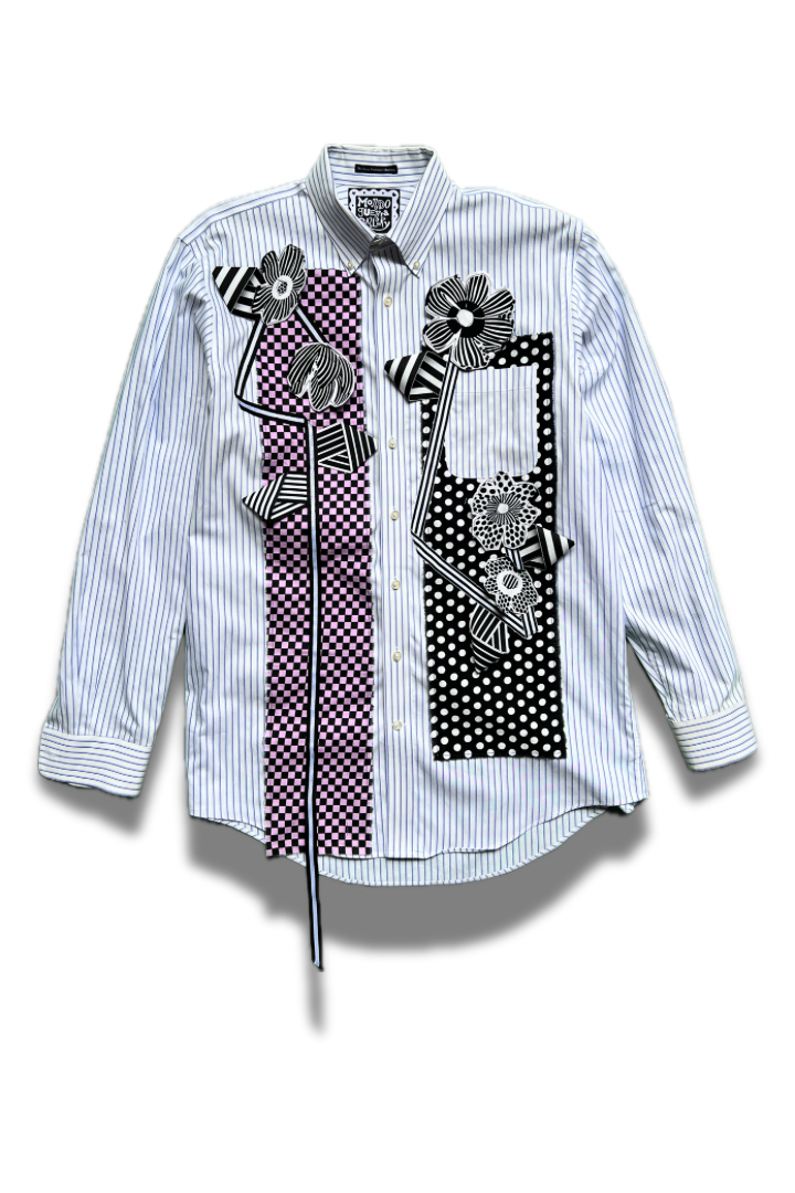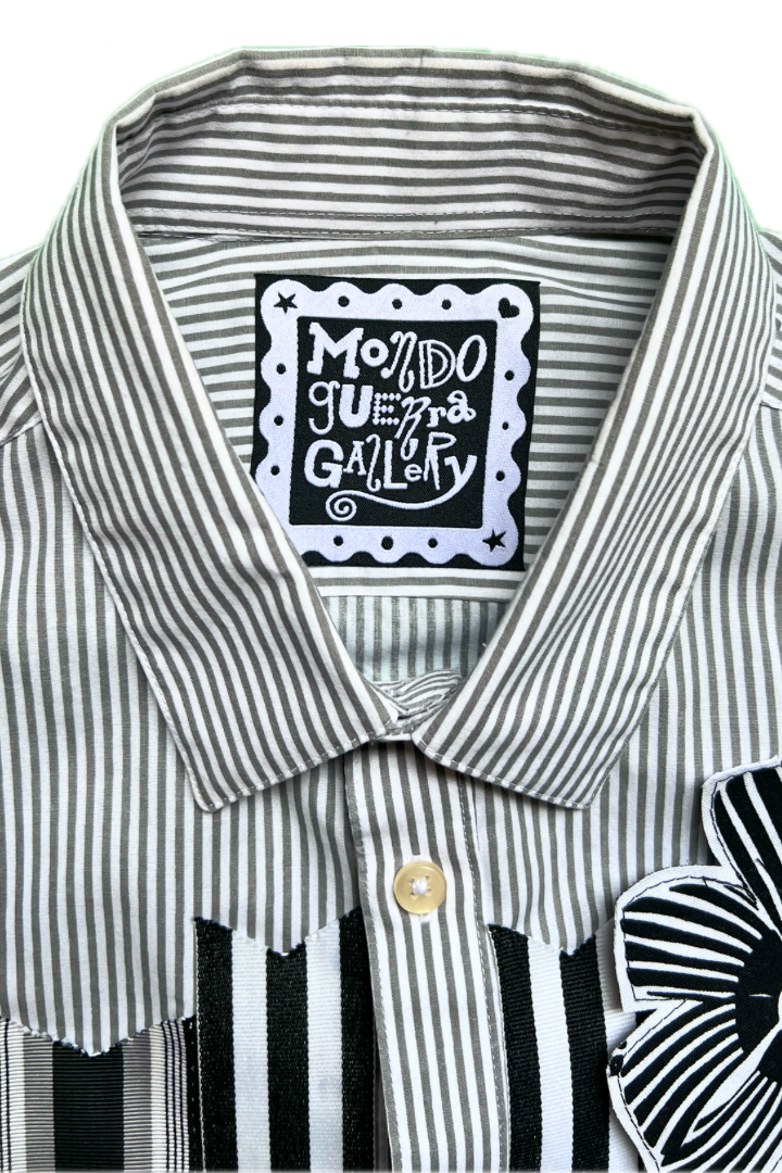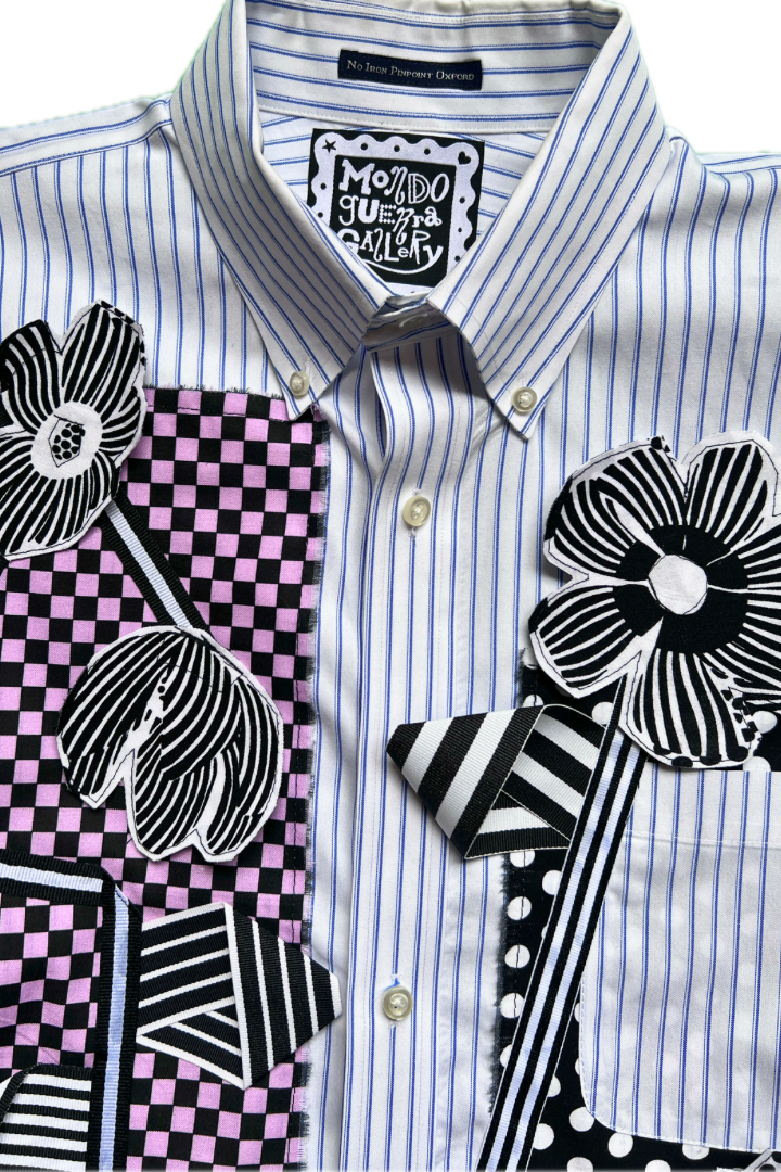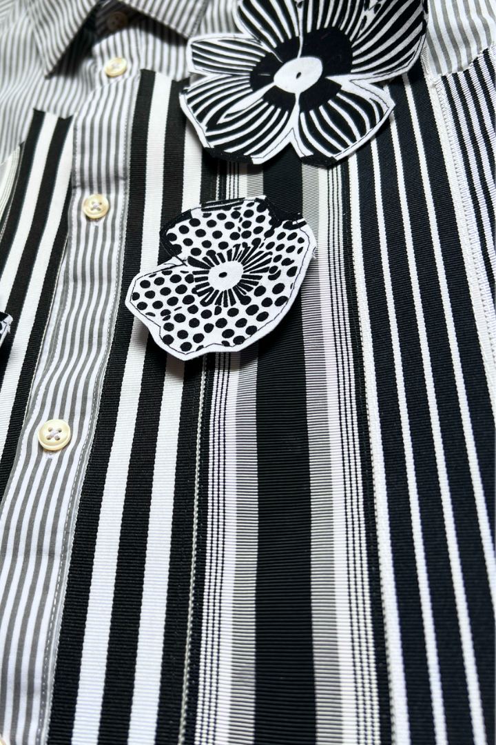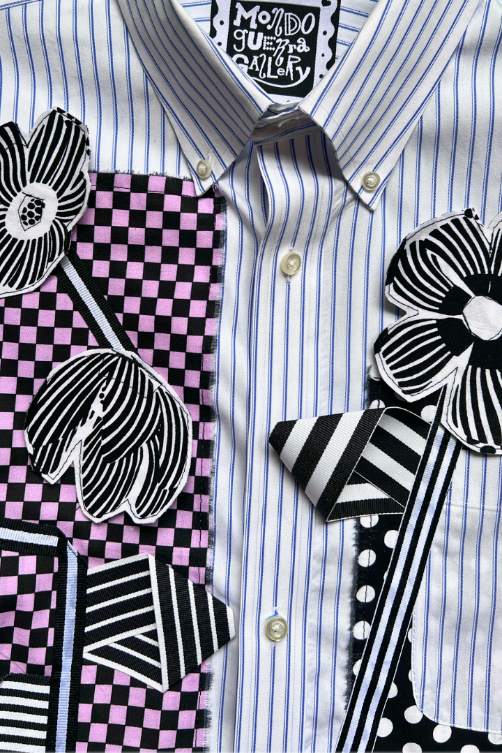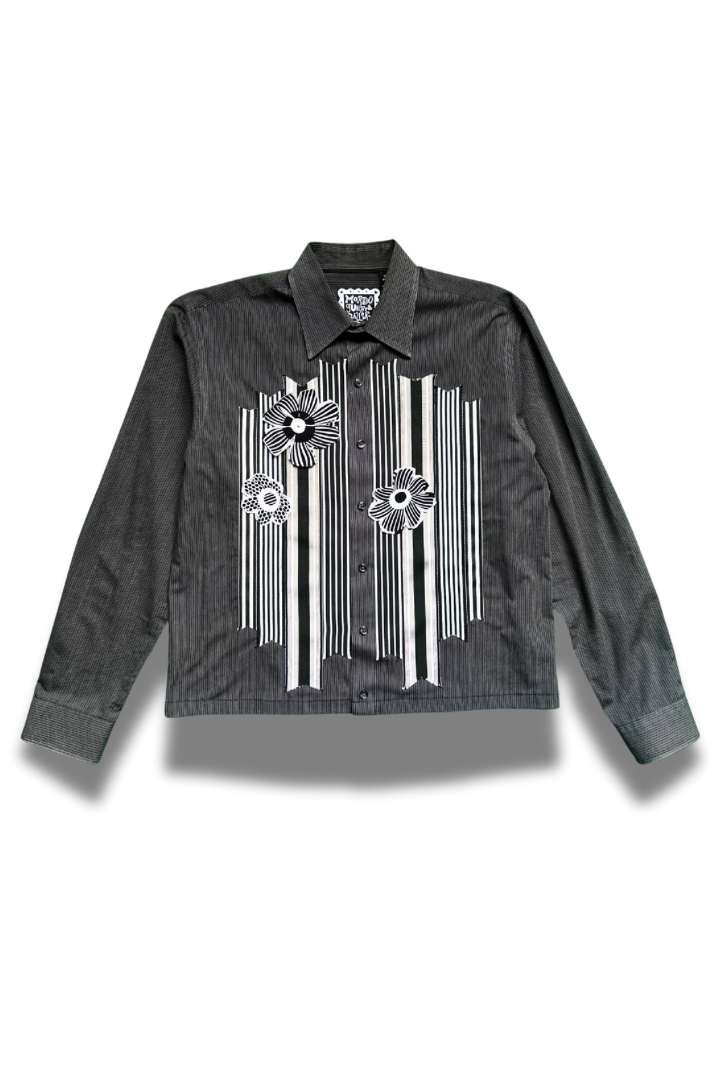 Gallery Pocket Shirt – Black & White Checker with Neon Flower Appliqué