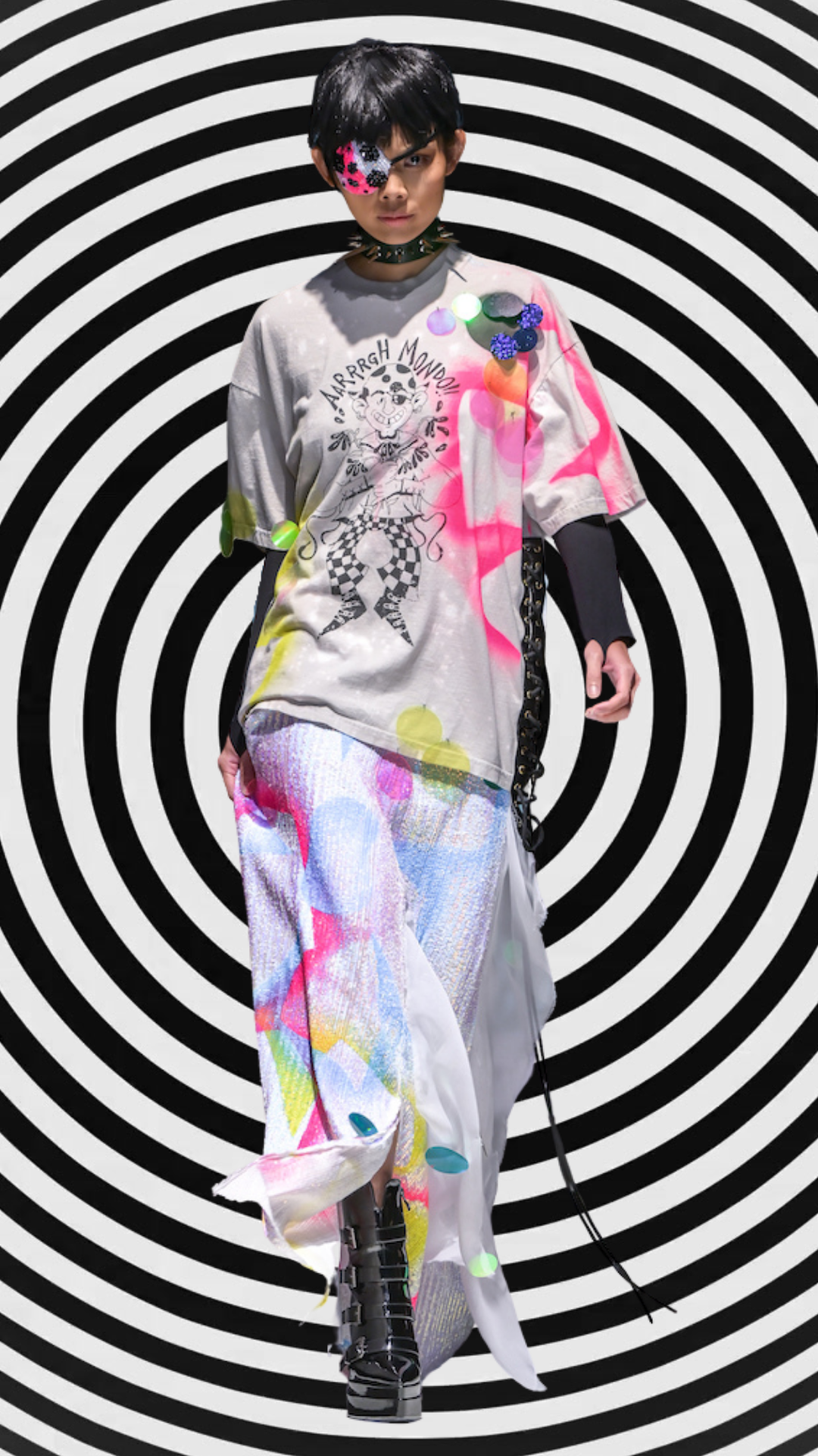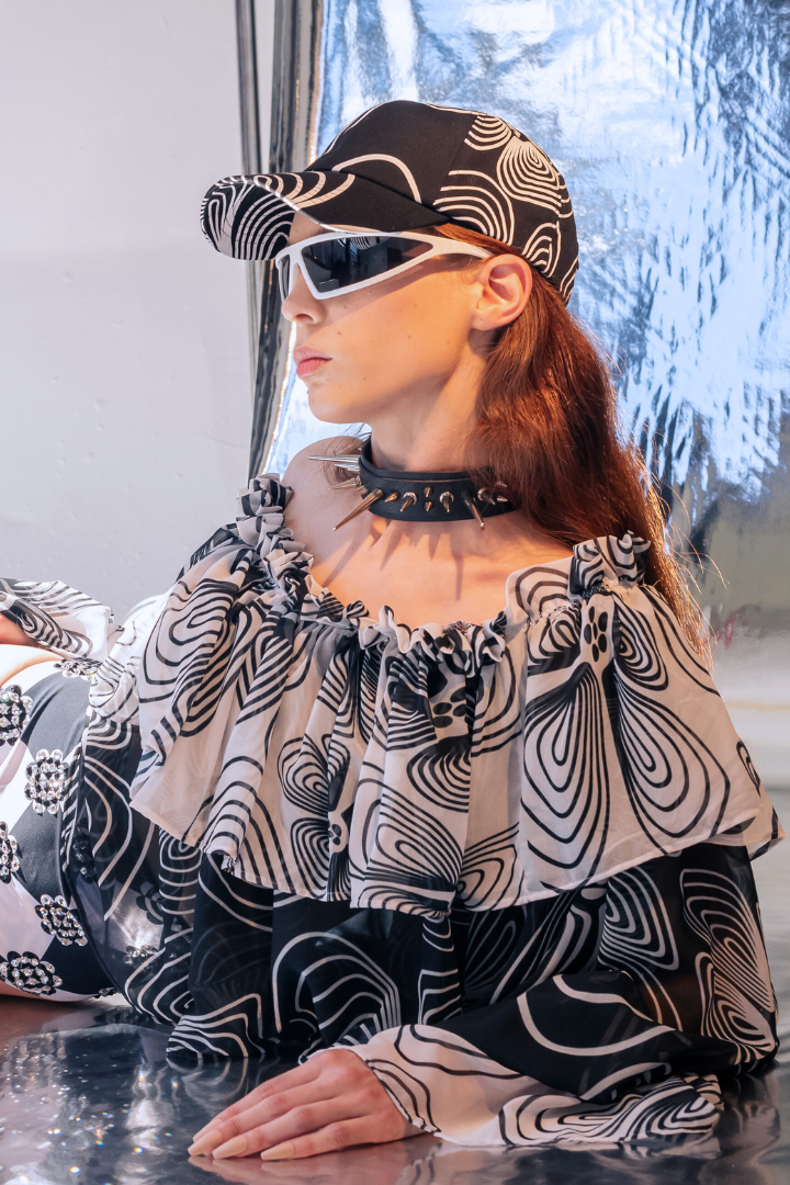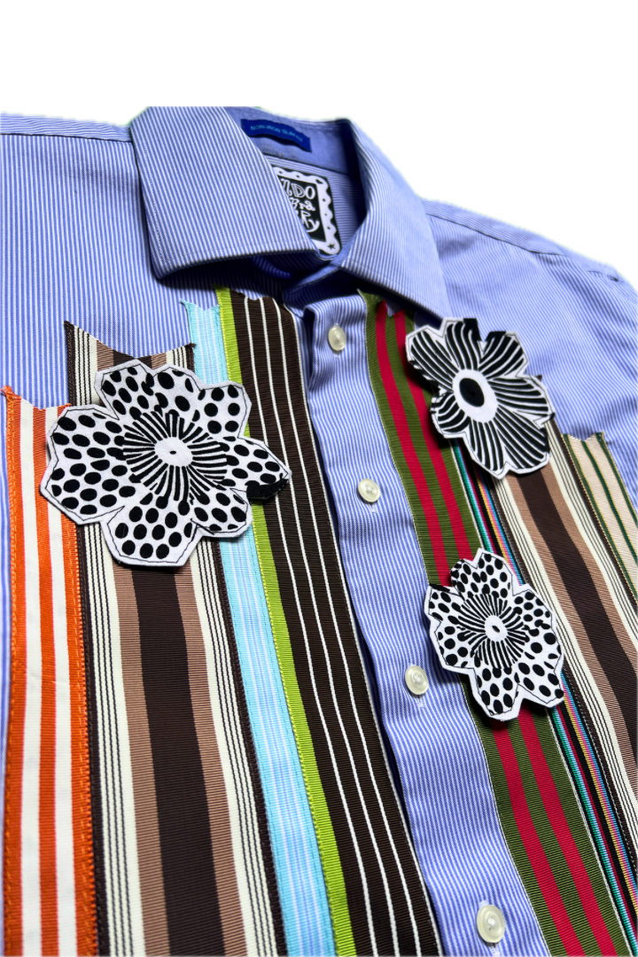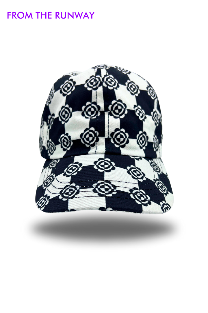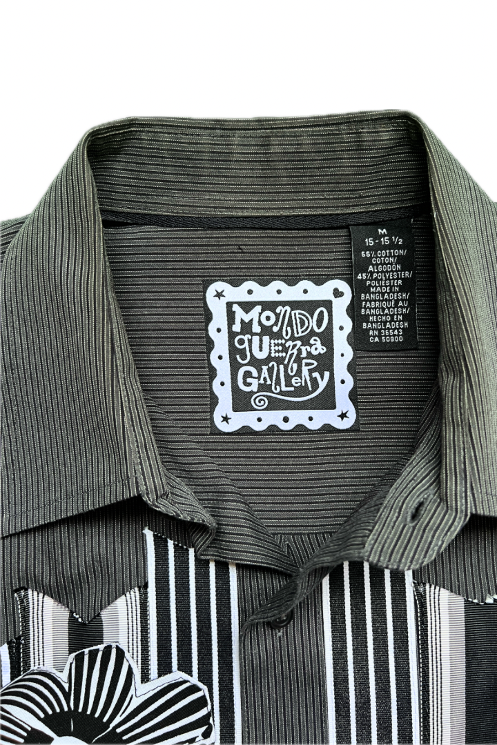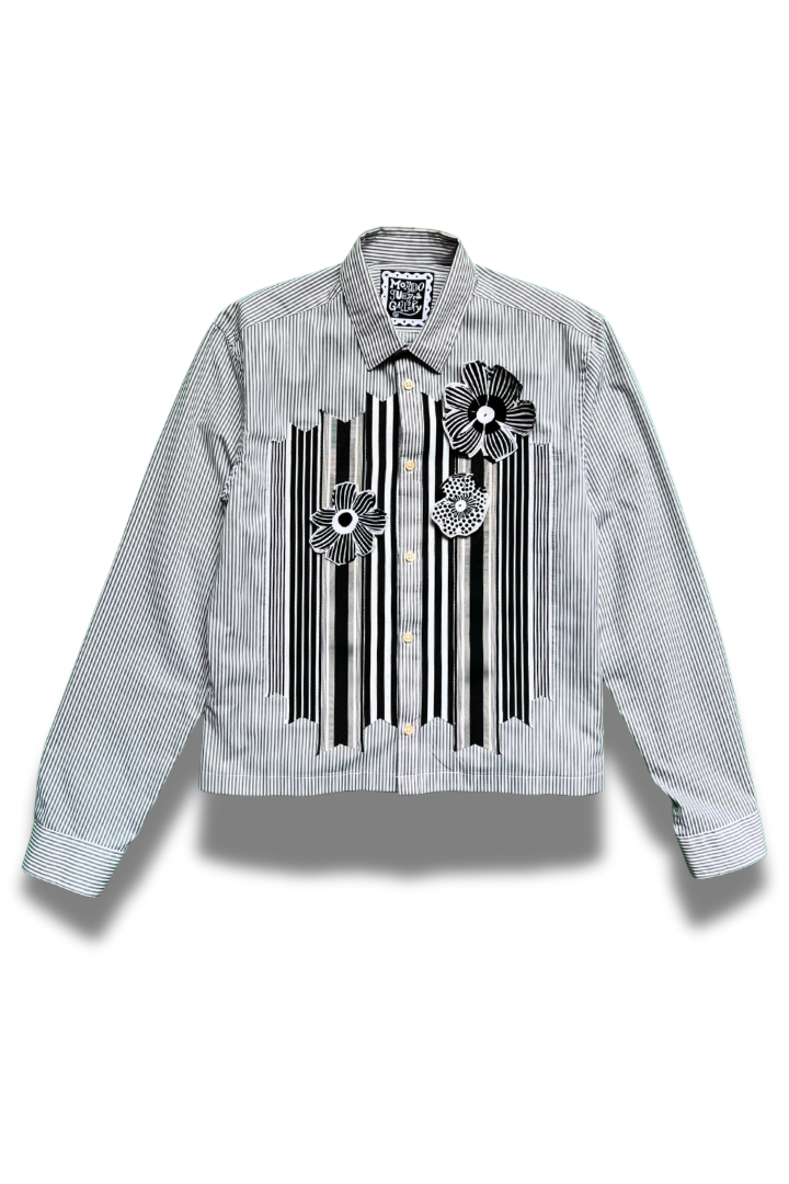Gallery Pocket Shirt – Black & White Checker with Neon Flower Appliqué