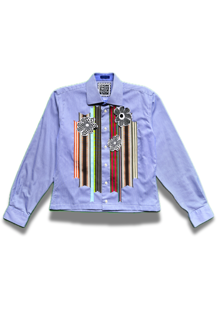 Gallery Pocket Shirt – Grey Pullover with Ribbon Brushwork