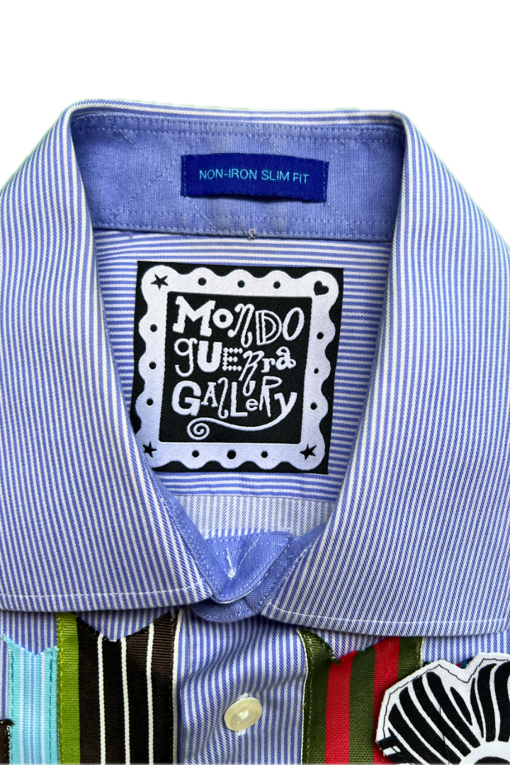 Gallery Pocket Shirt – Blue & White Stripe with Pink Checker Ribbon