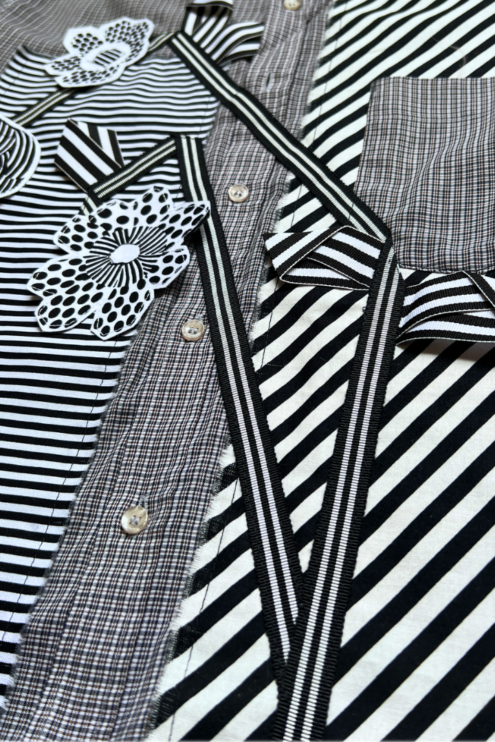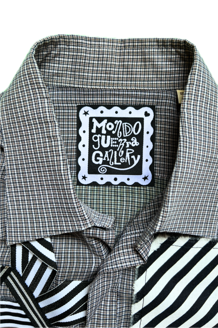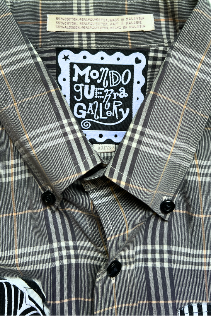 Gallery Pocket Shirt – Grey Plaid with Ribbon & Texture Detail