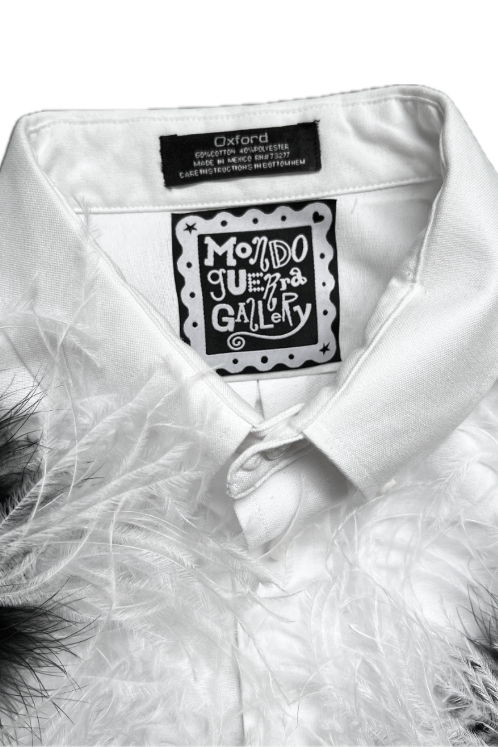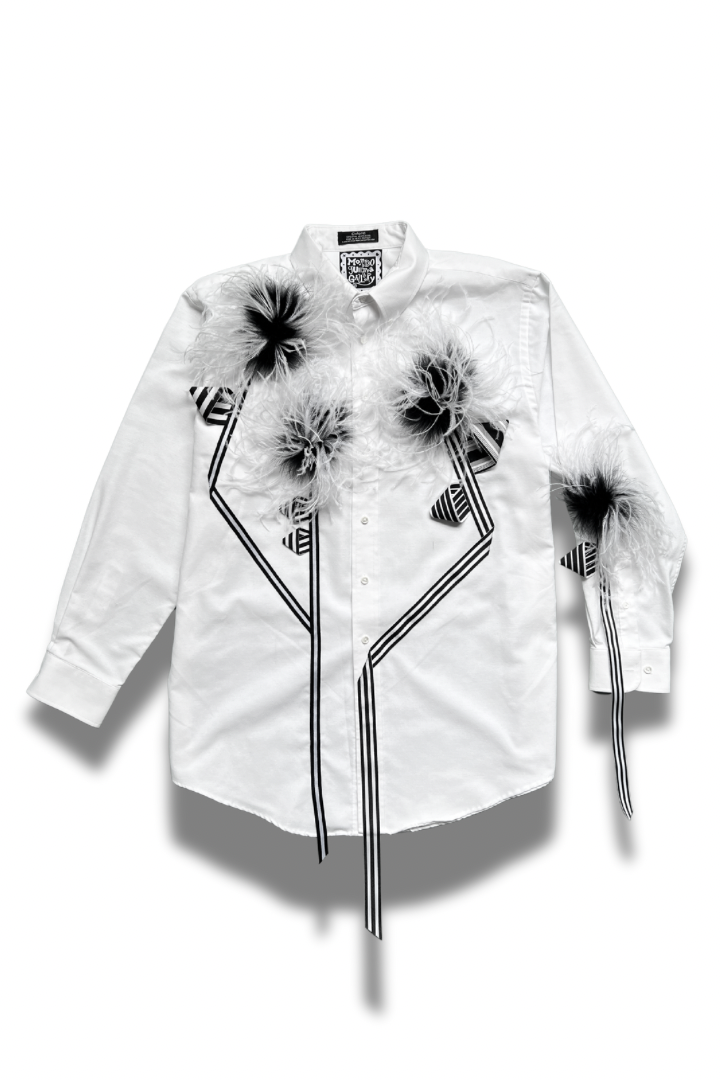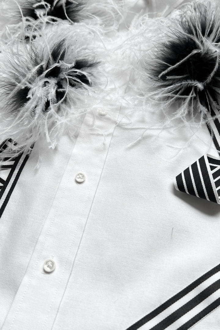 Ostrich Bloom Shirt – White with Custom Feather Pompoms