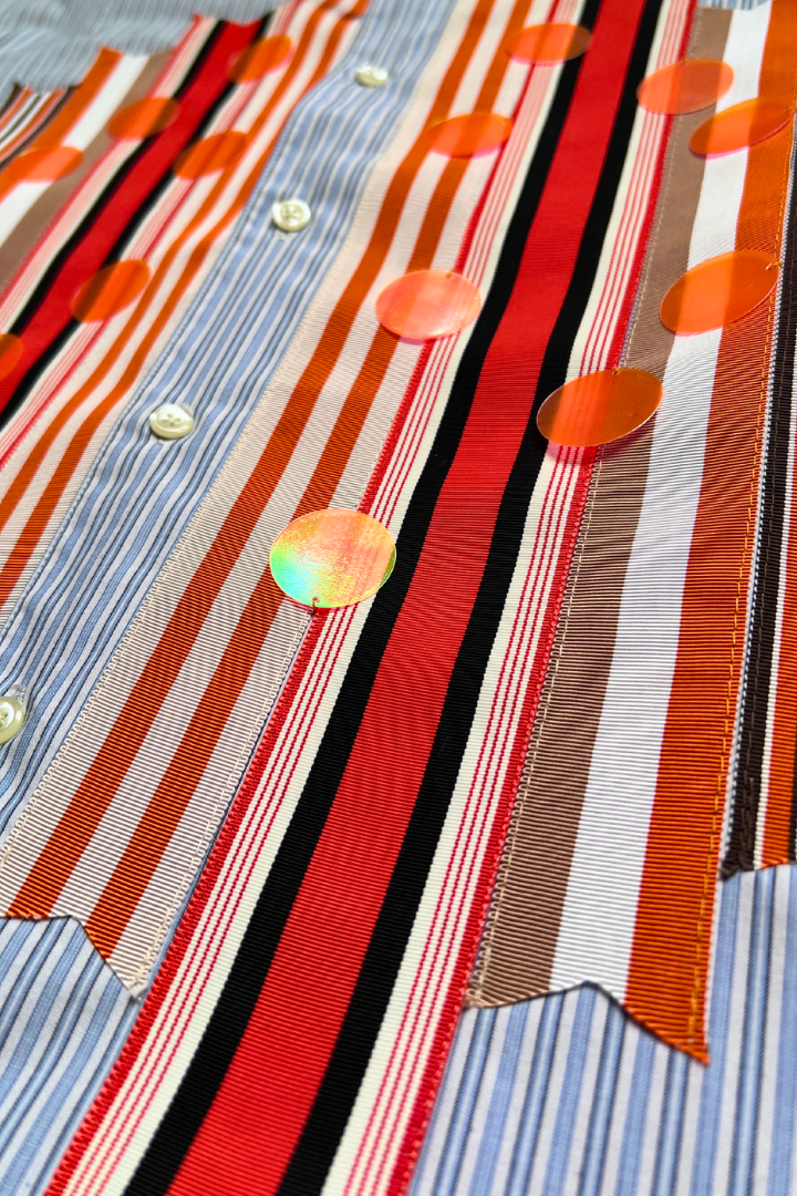 Sparkle Box Crop – Blue Stripe with Orange Ribbon & Paillettes