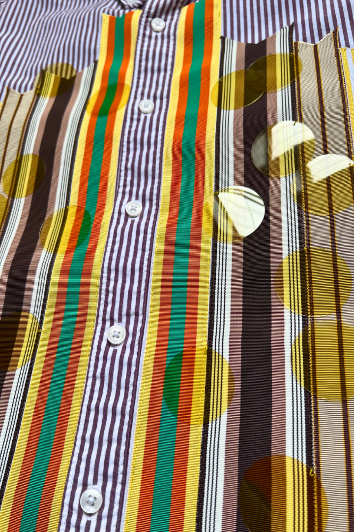 Sparkle Box Crop – Maroon Stripe with Earthtone Ribbon & Yellow Paillettes
